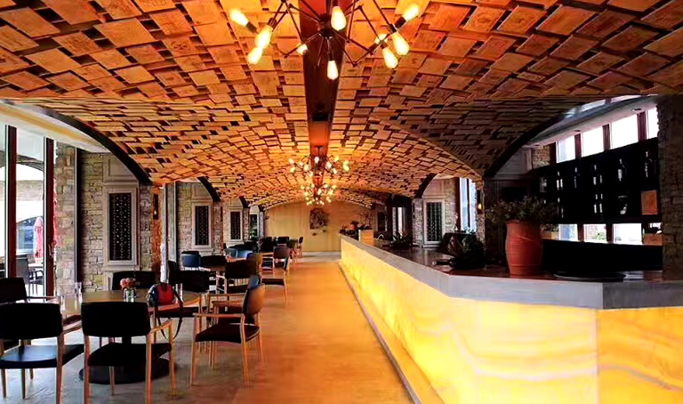 莊園由美國著名設(shè)計師鄭克耐設(shè)計,目前擁有意式風(fēng)情的婚宴大廳(可容納300多人)、藝術(shù)長廊吧,巴伐利亞風(fēng)格德國房、中國宮廷風(fēng)格的中國房,哥特式風(fēng)情教堂、專業(yè)的品酒室、酒酵室等。