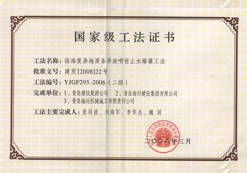 國家級工法證書