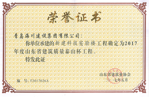 2013年11月20日開工,2016年工程竣工驗收并備案,自開工伊始即確定了爭創(chuàng)“泰山杯”的質量目標,“泰山杯”獎是山東省建筑行業(yè)工程質量方面的最高榮譽獎?!疤┥奖豹?省優(yōu)質工程)是為貫徹執(zhí)行國家《質量振興綱要》和《建設工程質量管理條例》,泰山杯堅持“百年大計、質量第一”和“質量興業(yè)”的方針,鼓勵建筑施工企業(yè)加強管理,搞好工程質量,爭創(chuàng)一流工程,推動山東省工程質量水平的普遍提高,在全行業(yè)繼續(xù)開展工程創(chuàng)優(yōu)評獎活動而建立的一個獎項,獎名定為山東省建筑工程質量“泰山杯”獎(省優(yōu)質工程),簡稱“泰山杯”獎。